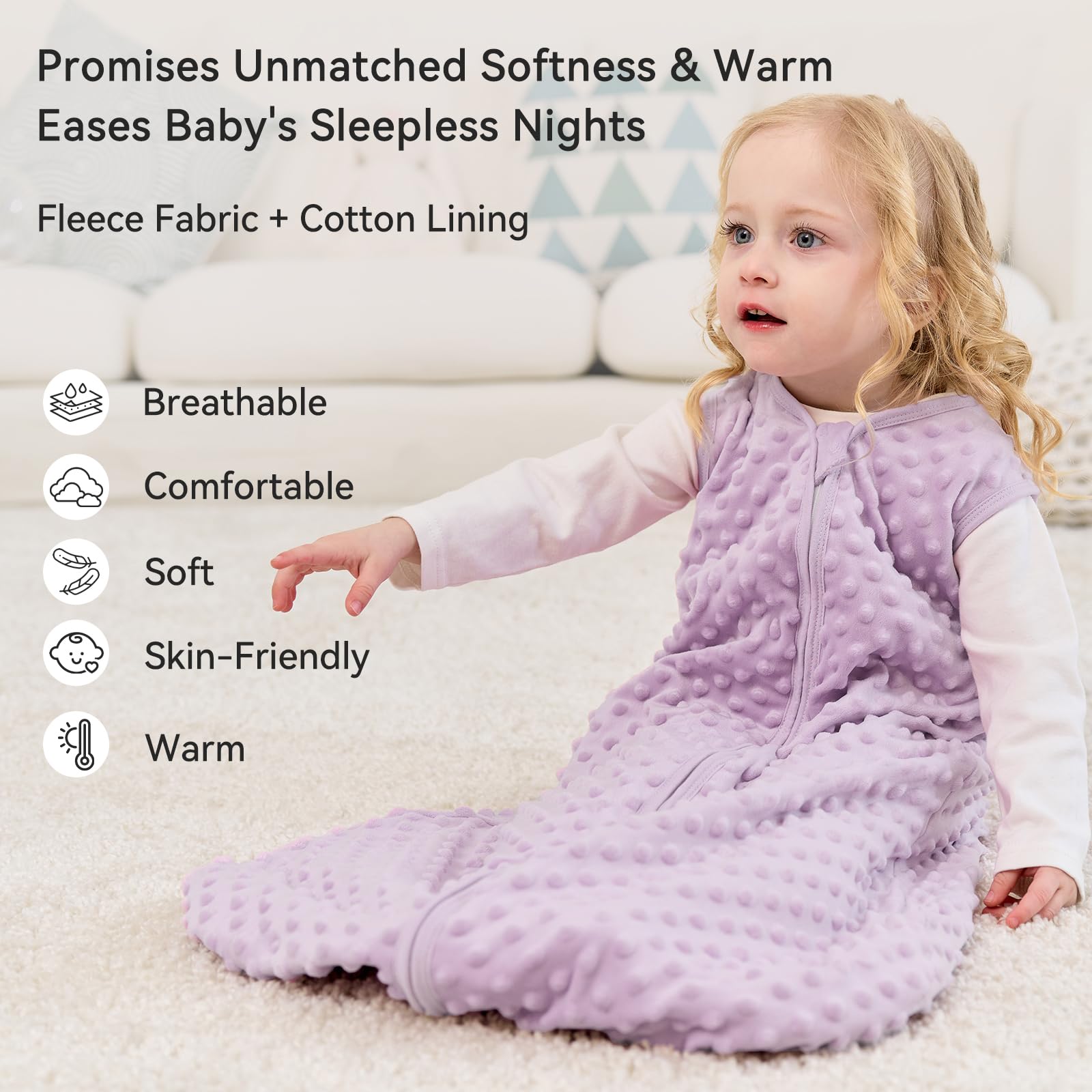 • Safe sleep - Our baby sleeping bag features a double-layer design that combines a 100% cotton lining with soft fleece fabric to provide your baby's sensitive skin a gentle, skin-friendly touch.