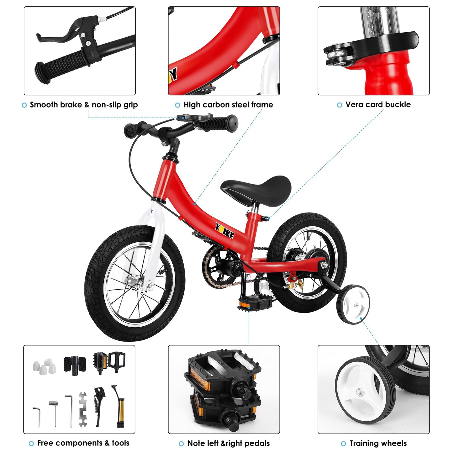 YBIKE 2 in 1 Laufrad, Kinderlaufrad und Kinderfahrrad Dual-Use-Funktion, geeignet für Kinder im Alter von 1-7, 12,14,16 Zoll mit Bremse, Pedal, Trainingstheorie